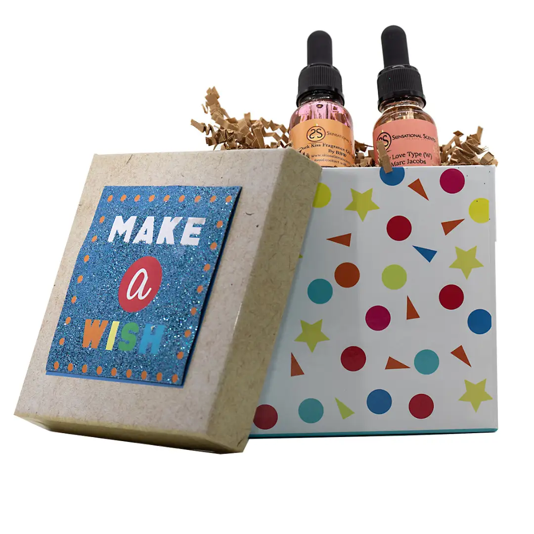 Customized your own gift set! Choose Two 1/2 oz body oil fragrance oils. The gift set comes with a box. Box may differ than pictured.